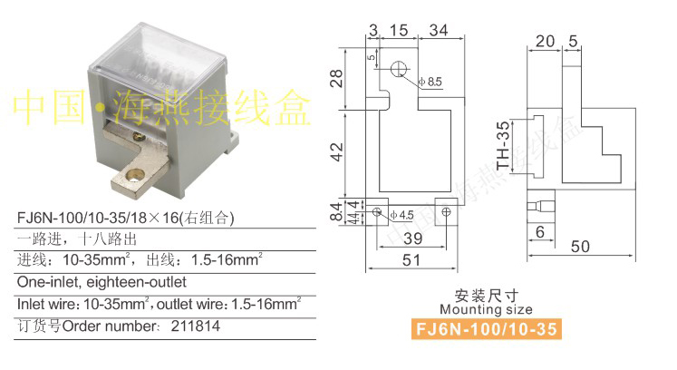 產(chǎn)品分類:FJ6N-100/10-35系列零線端子250