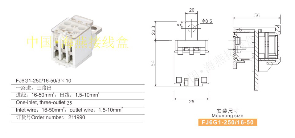 FJ6G1-250/16-50/3×10開關(guān)端子
