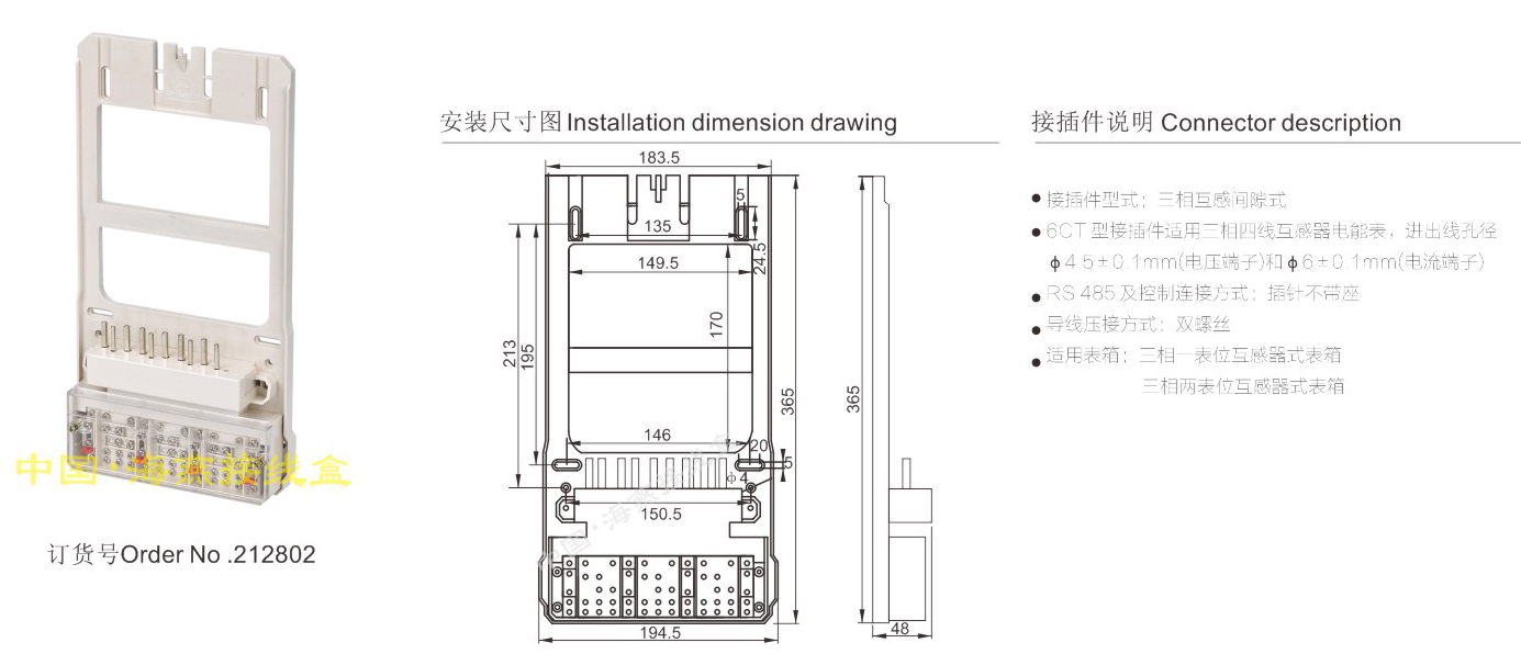 英文名稱:Three mutual inductance gap type electric energy meter connector (integrated with joint junction box)