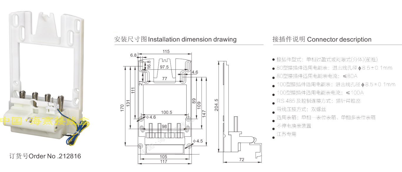 產(chǎn)品分類:單相分體電能表接插件454-455